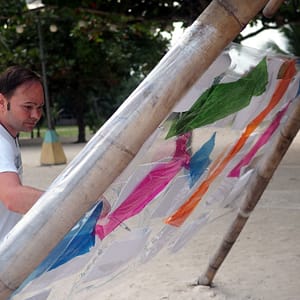 Celý deň zasväcujeme výstave, lebo dnes je posledný deň na pláži. Rozhodujeme sa pre 4tú pyramídu od starého hradu. Je to pyramídovitá štruktúra s bambusu, poskytuje tieň a striešku pre piknik. Roman krokovo vymeriava igelit, ktorý bude potrebný na inštaláciu – omotanie bokov pyramídy a ide sa raňajkovať a nakupovať.