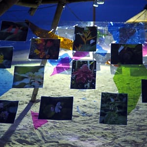 Výstavu síce tajfún nezobral, no už sa pri rannom fotení okolo motá upratovač a chce to dať dole. Ukecáme ho, nech to tam ešte nechá, no po raňajkách v Coco Loco už chýba lampáš a keď odchádzame na autobus strhne sa boj o metre štvorcové fólie do domácnosti. Aj taký býva osud aplikovaného umenia.