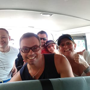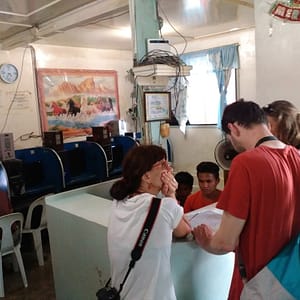 Hodinu trávime čakaním na bus. Je také teplo, že kupujeme len tri malé pivá. Bus žiaden, no opodiaľ zastane biely minivam a šofér vybehne von. Prihrmím za ním a chvíľu diskrétne postávam, ako si uľavuje cez plot. Potom zistím, že ide do prístavu a zoberie nás za 150 na hlavu. S fľaštičkou Rumíku sa dostaneme do prístavu Tagbilaran. Sme dosť plní, tak radšej nespievame, aby nás nevysadili. Chceme stihnúť sa dostať na Cebu do Oslobu, ku veľrybiemu žralokovi.