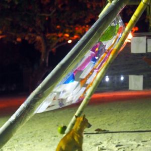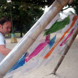Celý deň zasväcujeme výstave, lebo dnes je posledný deň na pláži. Rozhodujeme sa pre 4tú pyramídu od starého hradu. Je to pyramídovitá štruktúra s bambusu, poskytuje tieň a striešku pre piknik. Roman krokovo vymeriava igelit, ktorý bude potrebný na inštaláciu – omotanie bokov pyramídy a ide sa raňajkovať a nakupovať.