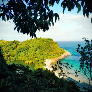 Prejdeme až na koniec ostrova, kde dostaneme geniálny nápad ísť na 600m chodníček na vyhliadku. Je teplo, nemáme so sebou vodu a tých 600m je v šlapkách po drsných kameňoch nekonečná vzdialenosť.