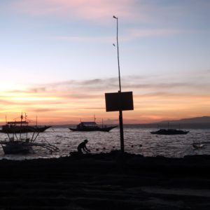 Na hlavnej ceste zarovno s ich plážovým domom berieme Tomma a poďho do Malatapay. Ideme rovno do prístavu, kde sa rozdeľujeme. A s K majú za úlohu zistiť ako je to s loďkou. Ja s Tommom mám vyriešiť ako to bude s obedom. Naša úloha sa ukázala jednoduchá i keď s tragickým koncom. Baby sa vrátia od lodníkov, že sme na zozname a 1300 by sme mali vyraziť. To je dosť času na jedlo. Objednávame si pivo a jedlo a čakáme. Po chvíli príde chlapík z lode, že treba ísť. Aileen sa s ním dohodne, nech ešte počká. Sme už na druhom pivku, jedlo nikde a druhýkrát príde pajko, že loďka už chce odísť. Zase ho dobije s tým, že nech počká.