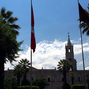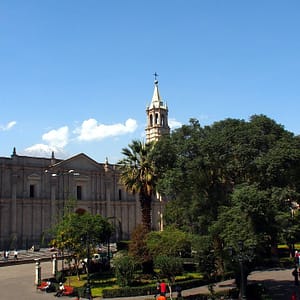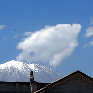 Uvarení a nevyspatí vystupujeme pod dominantou sopky Misti v ďalšom Cuidad Blanca – Arequipa. Kostoly a pár domov je síce z pekného bieleho vulkanického kameňa, ale ešte by som to bielym mestom nenazýval. Je po daždi. Namáčané pečko v presladenej riedkej káve na stanici nás nepreberie. Berieme prvý taxík na Plaza Armas, kde sa na nás vrhá Cecília. Keďže neviem nič nájsť a aj keď nájdem čekin je až o jedenástej, tak nakoniec podľahneme Cecíli a ideme ku nej. Za 40ku to je dosť neupratané, sme tam ale sami a inet akotak ide.