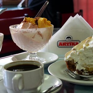 Ako dezert sa dorazíme mega zmrzlinovým pohárom prešpikovaným oreo kexíkmi a fajnou kávou. Ako sa tak futrujeme zmrzkou pozeráme na hordy štastných detí opúšťajúce zmrzlináreň. Toľko radosti.