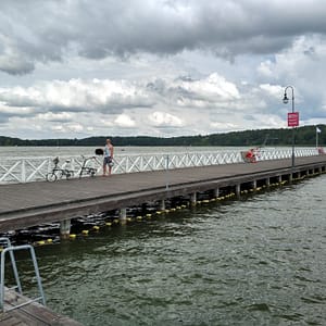 Keď konečne G prestane po niekoľkých dňoch nevysvetliteľne kýchať, vyrážame piatok 26.07. niečo po 17 hodine cez Poľsko smer Baltik. Po krátkej noci na diaľničnom parkovisku niekde pred Varšavou sme pred obedom 27.07. v Augustówe. Na bajkoch ideme krátky 6 km okruh od jazera s pontónmi do mesta. Podľa TA vyberáme 3 možnosti na obed, nakoniec volíme Fisza na brehu spojovacieho kanála. Tatarák je božský a aj parádne nastajlovaný. Rybia polievka a girice nesklamú. V ošítke s chlebom nám v ustricovej lastúre donesú maslo. Interiérový dizajn a lokalita sú top. S dvoma pivkami platíme kartou 114 zl. Pred krátkym spánkom sa ešte vykúpeme v nie moc teplej vode jazera.