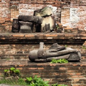Ďaľšie ruiny sú od parkoviska oddelené masívnym trhom s kadečím a vedľa nich je aj funkčný chrám s mega veľkým Budhom.