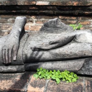 Keď sme tu boli posledne asi sme iba jazdili naokolo, teraz platíme po 50B za vstup do chrámu, majú aj 220B pass na 6 chrámov, to ale v tomto teple asi nedáme. Chrám je pekný, je tam Budhova hlava vrastená do koreňov ako najväčší trhák. Ideme ďalej schladiť sa ľadovou kávou a vymyslieť plán cesty.