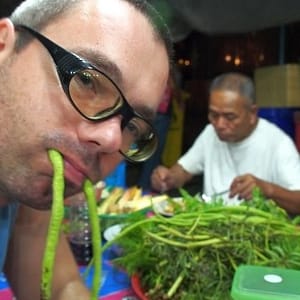 Po sprche opäť doma si dávame masáź nôh. Úľava. Pražené ryžové nudle s darmi mora nám nestačia, volíme milý podnik na ulici, najsamfasa jedlo doteraz – bravčovinka s mätou, ryžou a čerstvou zeleninou. Stále nemáme dosť, dávame si ešte 11 rokov spomínanú banánovú palacinku s nutelou.
