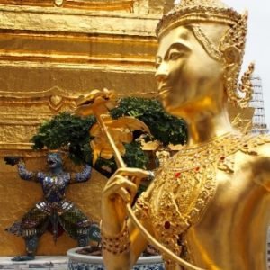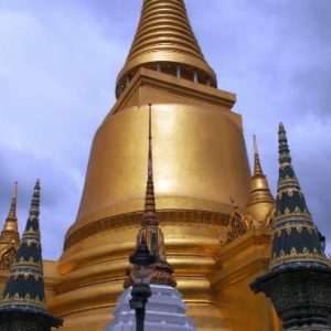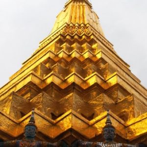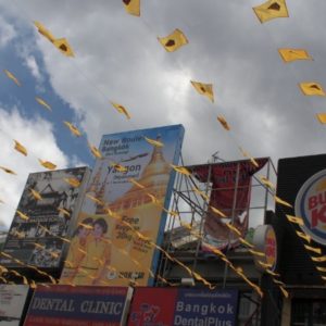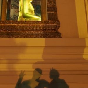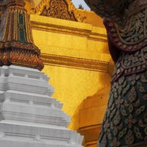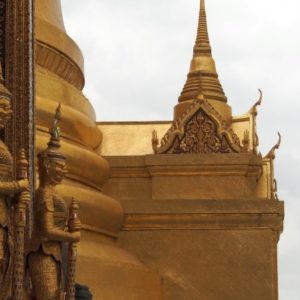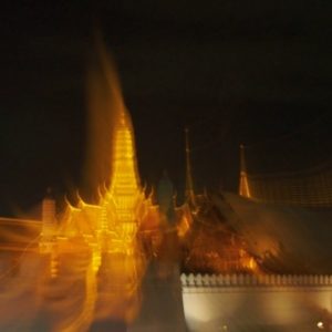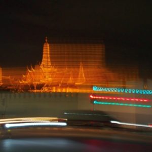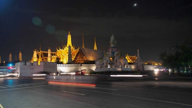 Ohúrení večerným BKK fotíme kráľovský palác a lokálnu trafiku. Využívame lístok do chrámu (Wat Suthat) a vchádzame za spevu modlitieb do večernej tmy. Na námestí pozorujeme cvičiace decká a už podľa GPS ideme domov. Na centrálom kruháči sa derieme hordou spievajúcich manifestantov, nechápeme čo je to za akciu, ale všetci vyzerajú nadšene.
