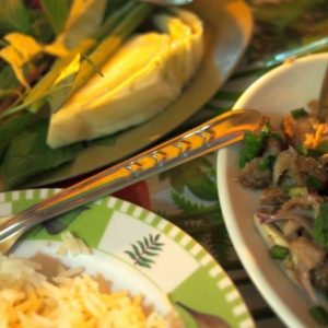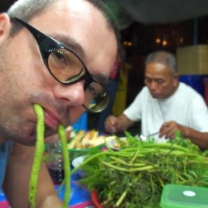 Po sprche opäť doma si dávame masáź nôh. Úľava. Pražené ryžové nudle s darmi mora nám nestačia, volíme milý podnik na ulici, najsamfasa jedlo doteraz – bravčovinka s mätou, ryžou a čerstvou zeleninou. Stále nemáme dosť, dávame si ešte 11 rokov spomínanú banánovú palacinku s nutelou.