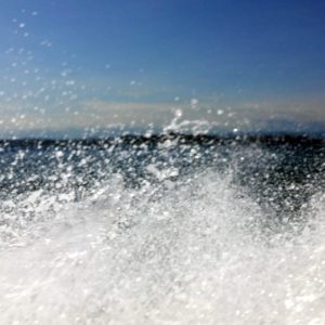 Na vode je príjemne kľudne, sedíme úplne vzadu s Poľkami, takže to ani moc neskacká, keď ideme cez brázdu po inej lodi.