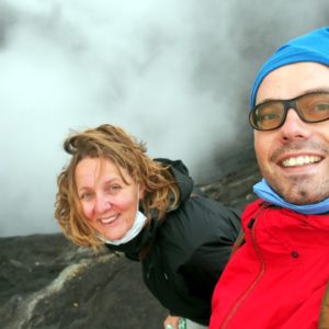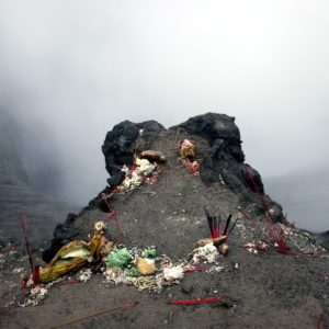 Presunieme sa do kaviarne, kde si dáme poriadne presladený čaj a kávu za turistických 10000R (dokopy). Ideme sa pozrieť na kraj kaldery smerom na Bromo kráter. Riadne tam fučí. Schovávame sa v reštike, ale pre turistické ceny končíme len s čajom a kolou. Pomedzi to nás oslovujú motorkári a vodiči jeepov, že nás ovezú na kráter alebo na výhľad, alebo na oboje. Najlepšia ponuka je motorka pod kráter za symbolických 25000R. Od jedného chlápka s jeepom, ktorý ani za svet nepovie cenu si necháme poradiť kam na jedlo. Skončíme kúsok pod reštikou, v domáckej jedálničke, výborné fazuľové struky s tempehom, tofu a ryža (10000R). Vypýtame si aj čerstvé čili – na vypálenie červa. Horko ťažko dojeme jednu malú papričku. Je to bolestivé peklo, ale osviežujúco štipľavé a má to aj chuť.