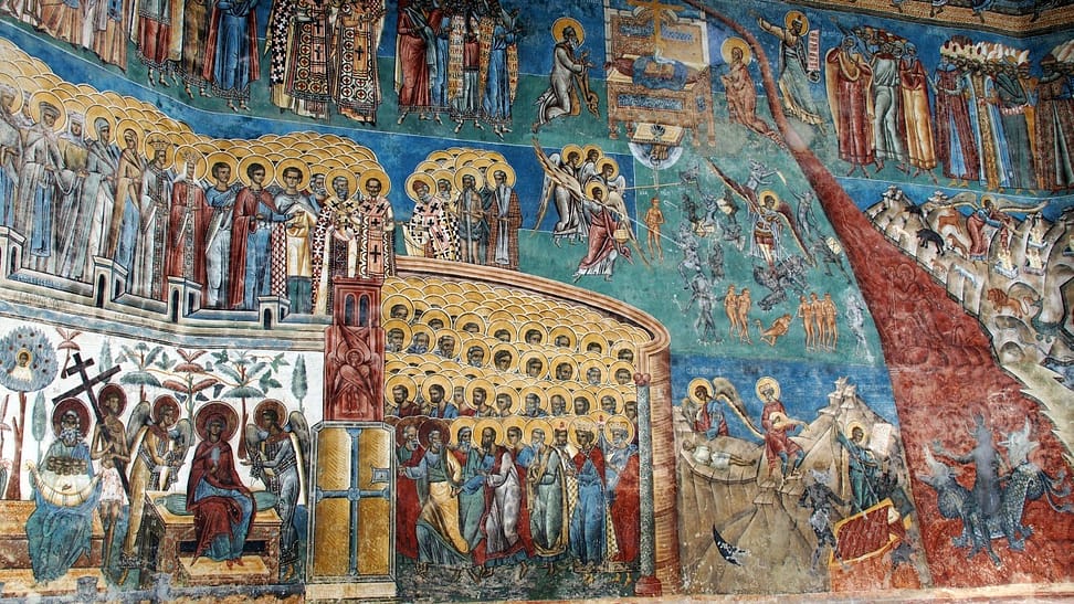Cestou sú maľované kostoly a tak sa v jednom zastavíme. Tiež slušne rozbitá cesta v dedine – ako to plynofikovali. Platíme aj za parkovanie. Kostol je ale fantastický. Celý je pomaľovaný a z farieb dominuje nádherná lapis azuli modrá. Ideme dnu, kde sú maľovky zrekonštruované do perfektného stavu, no začne sa tam hrnúť autobus rôznorodých turistov, tak zdrhneme von. Chceli sme si robiť piknik, no nie je to tu moc reálne, tak len posrkávame vínko a počúvame rádovú sestru ako autobusu turistov vysvetľuje niečo z histórie. Piknikujeme až na parkovisku a ideme pozrieť ďalší kostol. Ten by mal byť dočervena. A aj je, ale nie je ani zďaleka tak dobre zachovaný. Tri štvrtiny vonkajších stien sú biele. Vyrazíme smer Moldavsko, že prejdeme ešte ňáke tie kilometre, kým bude tma. Nech sme zajtra čo najskôr na hraniciach. Nikde cestou ale nič zaujímavé na spatie nenájdeme, tak to zapichneme kúsok od hraníc za opustenú benzínku.