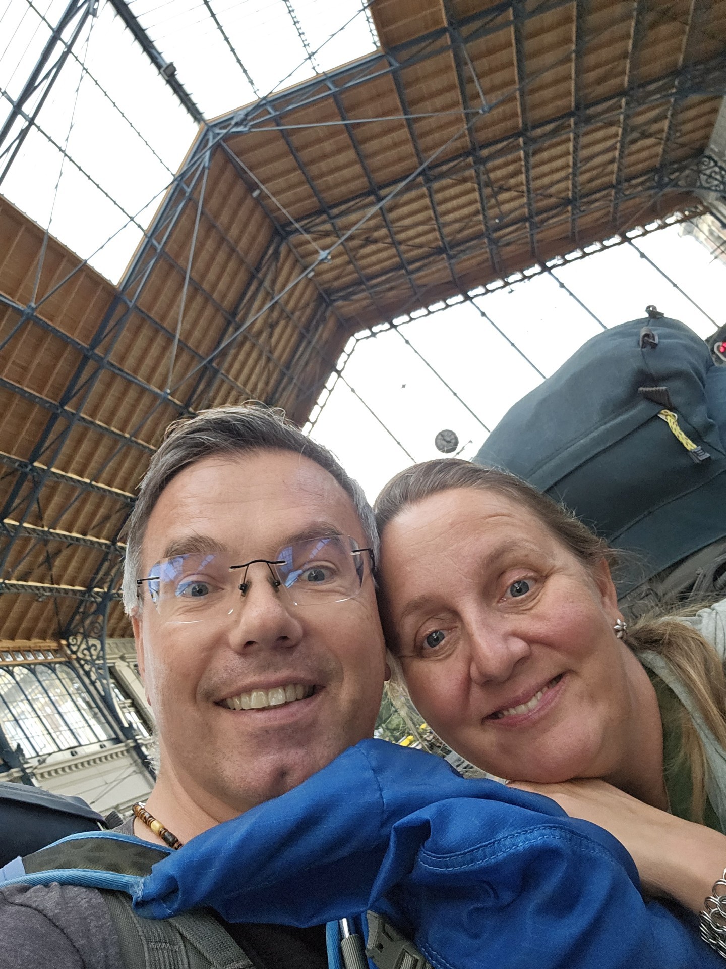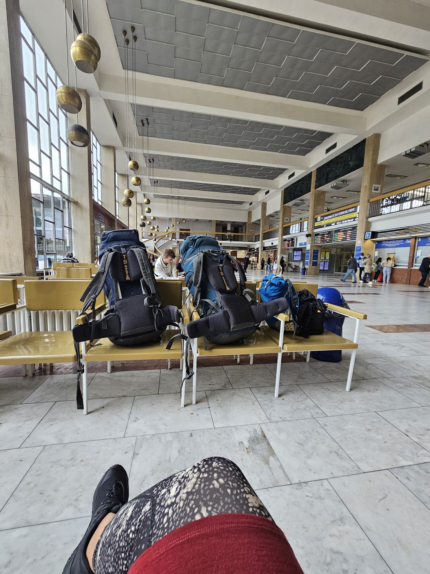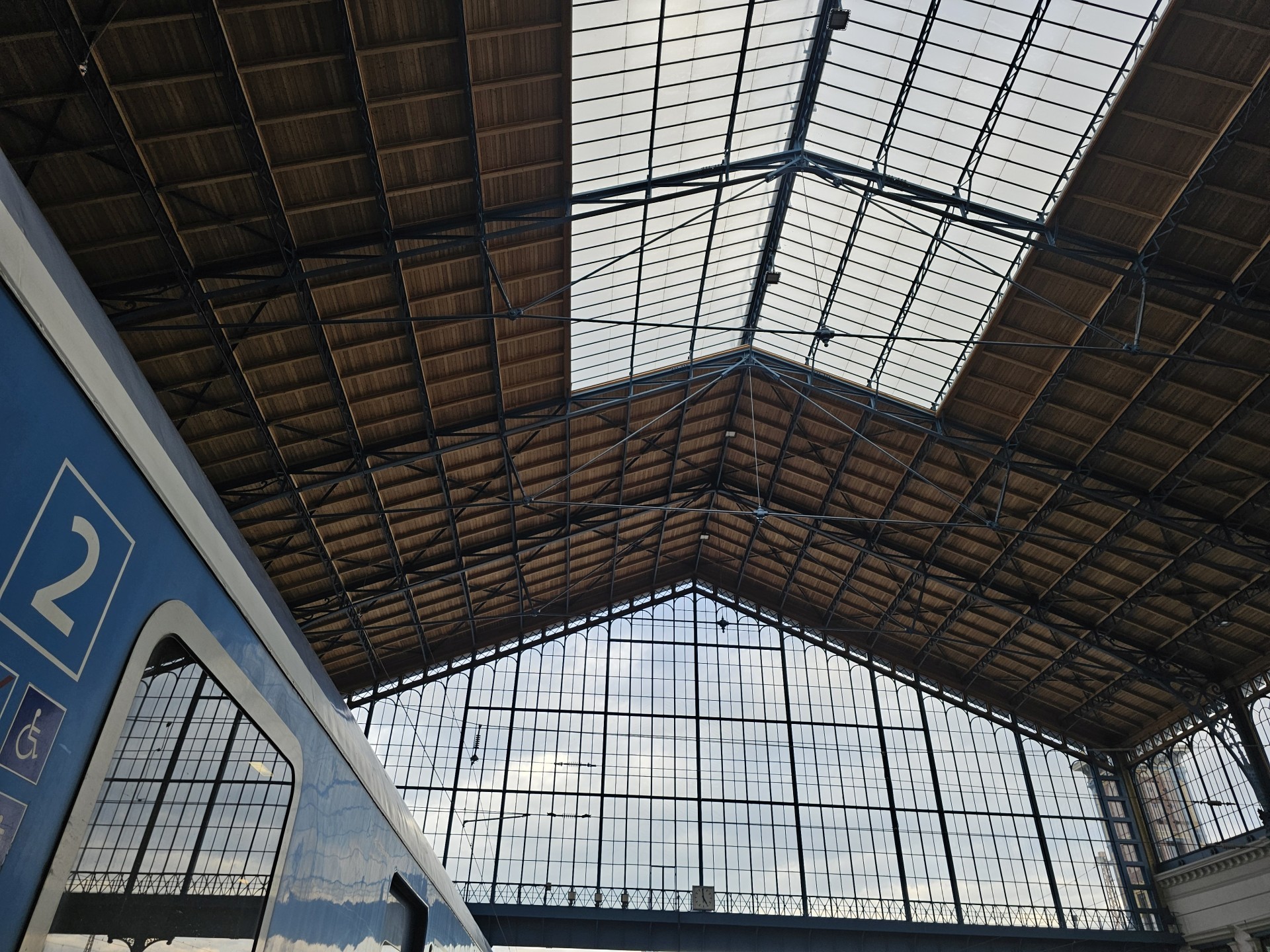 V Nových Zámkoch síce naše EC meškalo, ale iba 20 minút a tak naša pôvodná 11 minútová rezerva nedokázala pokryť naše už hodinové meškanie. Na ďalšie EC nám teda zostava už len hodina, no ani sa nestihneme presunúť do reštiky a už má aj naše druhé EC meškanie 20 min. Staničný reštika-bufet (dá sa platiť kartou) je celkom drsný a nemá hazel, treba vonku platiť 50c.