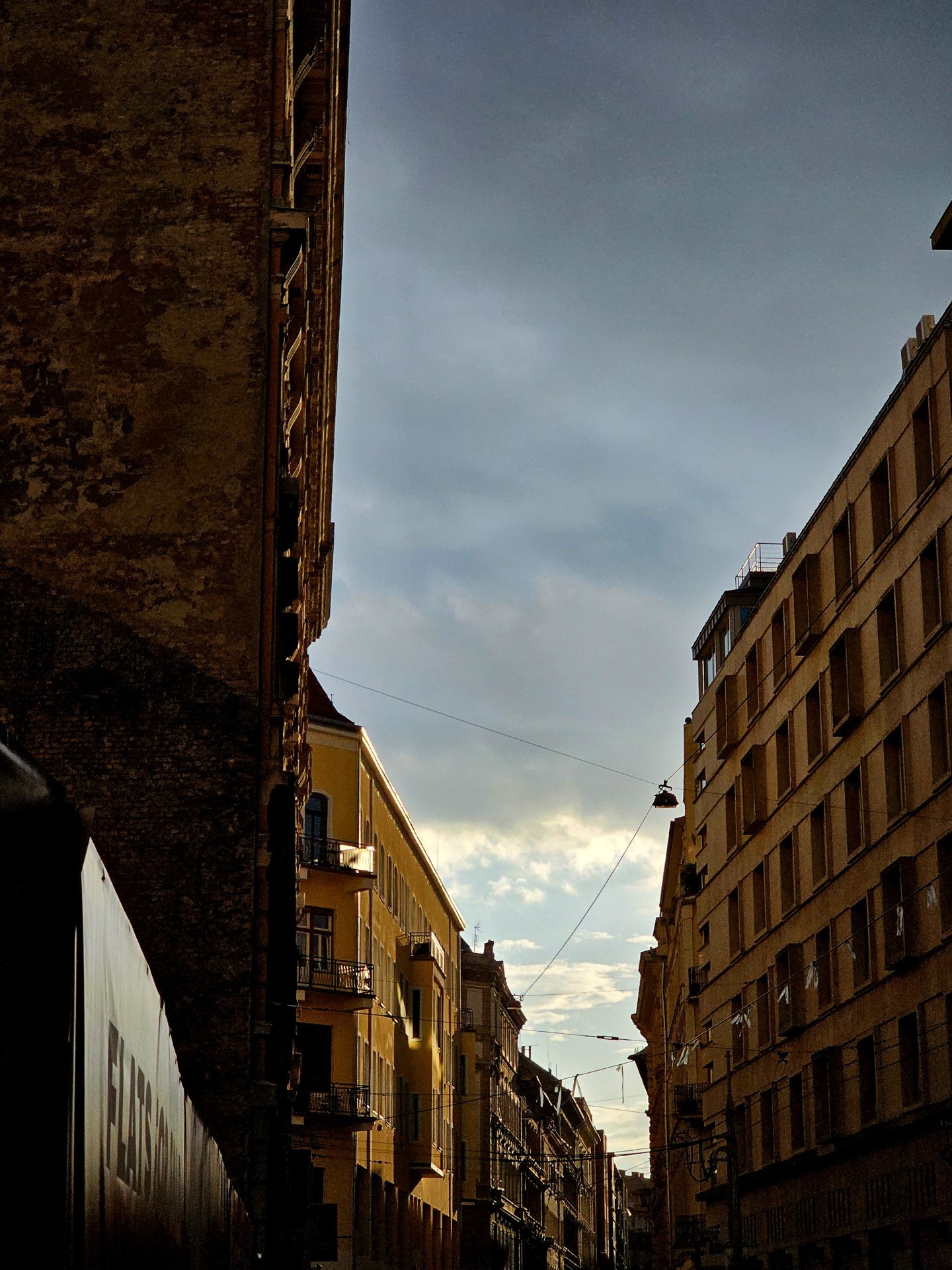 Konečne prichádza české EC, nainštalujeme sa za jedálenský vozeň. Je celkom plné, a tentokrát nám nechcú načapovať pivo do skla mimo jedálenského. Mali sme isť rovno tam. Predajú nám len plechovky, ale aspoň české. Príchod do Budapešti s 2a pol hodinovým meškaním, už nikoho neprekvapí. MHD lístky máme od poslednej pokuty, tak frčíme rovno na hotel v Židovskej štvrti. Pomaly zapadá slnko, tak máme pekné posledné svetlo. Dohnányho ulica je lemovaná reštikami a kaviarňami.