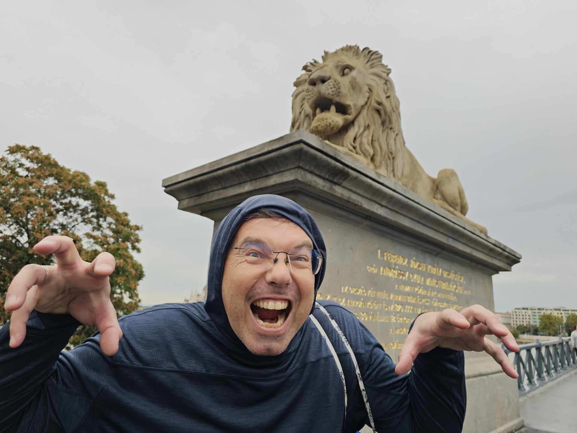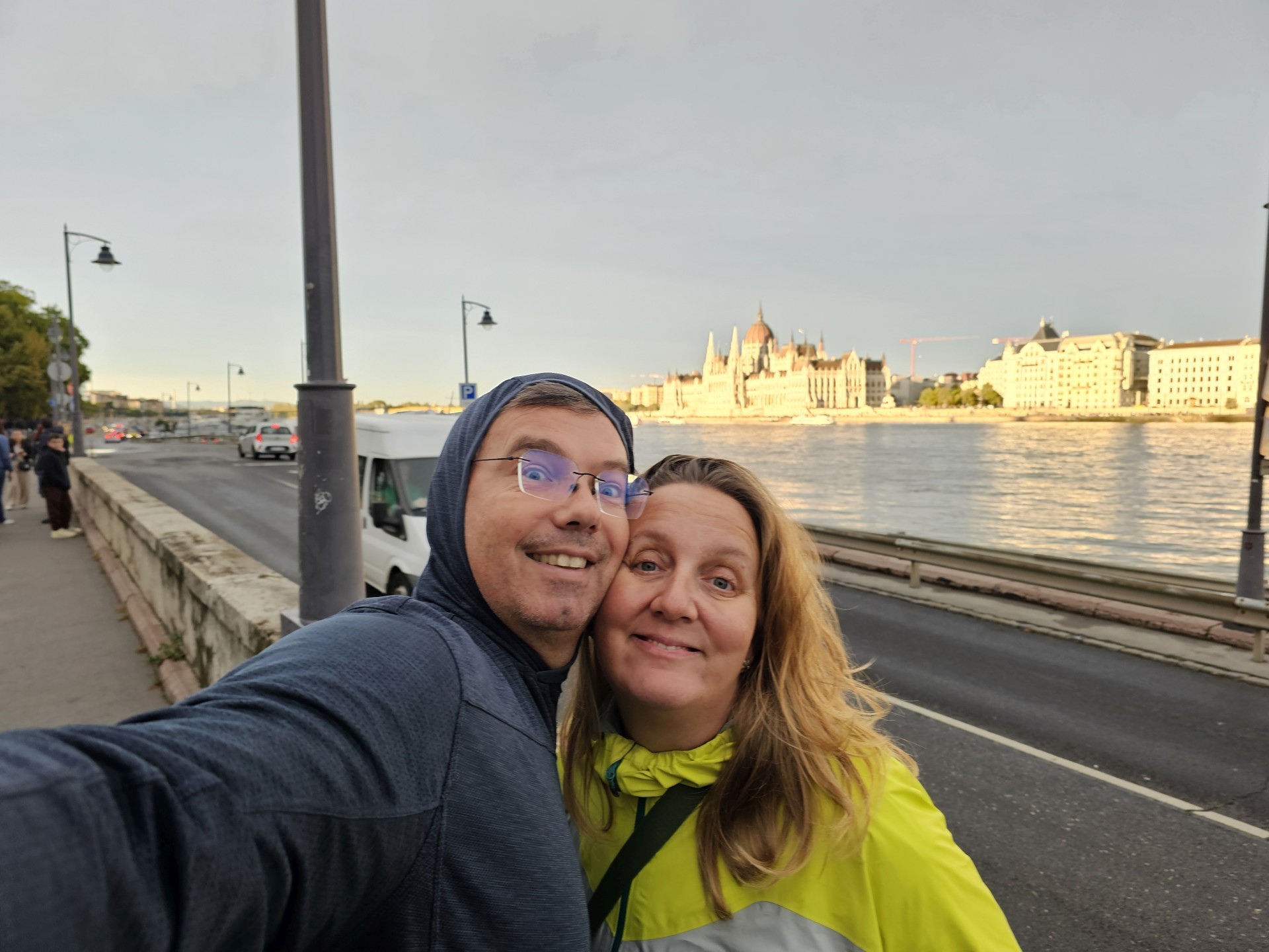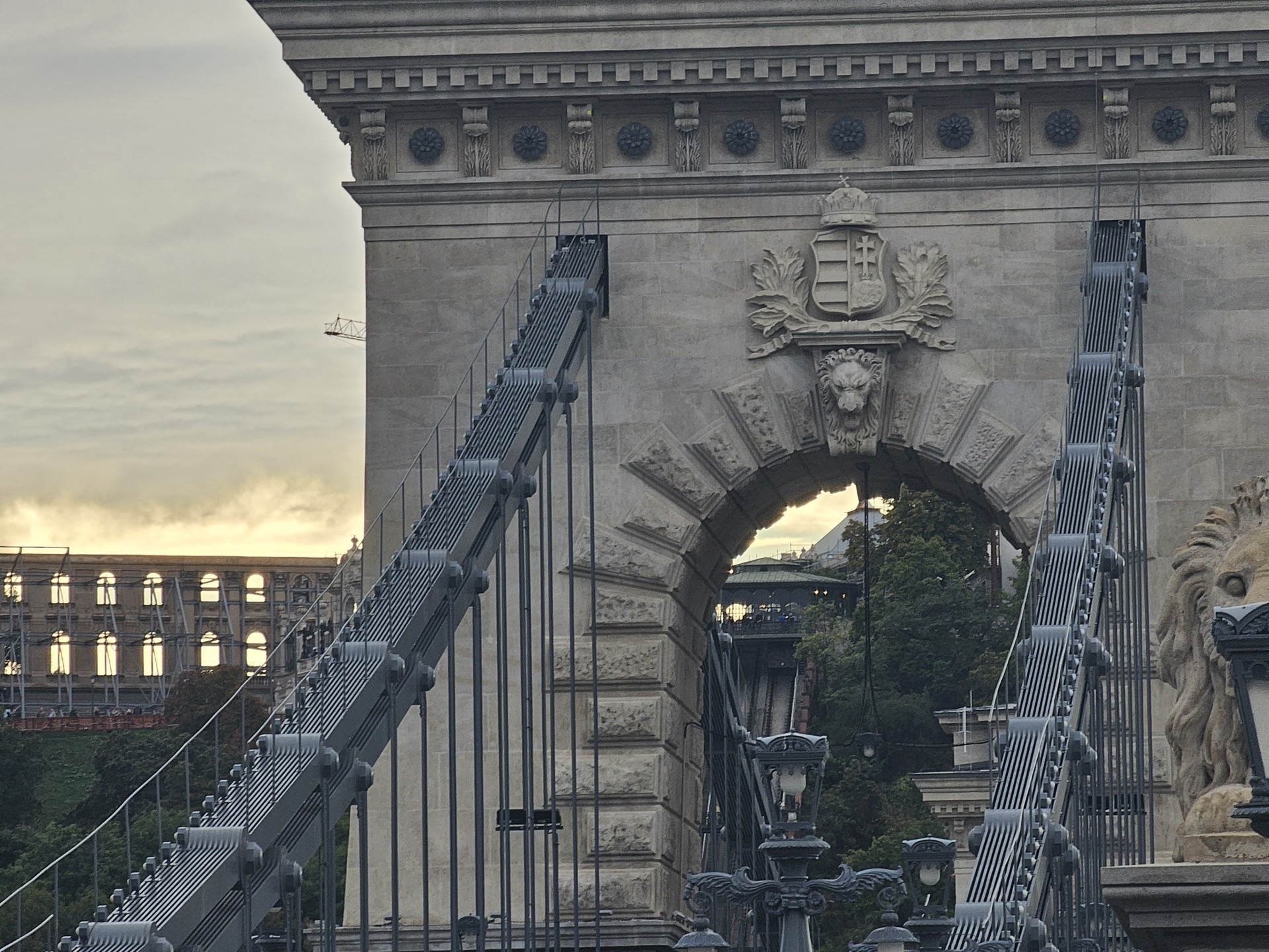 Cez Széchenyi reťazový most (posledne bol v rekonštrukcii) prejdeme na druhú stranu, chvíľku posedíme a vydáme sa doprava, až na úroveň parlamentu, na ktorom je pekné posledné svetlo zapadajúceho slnka. Je nádherne, konečne sa nám vyčasilo.