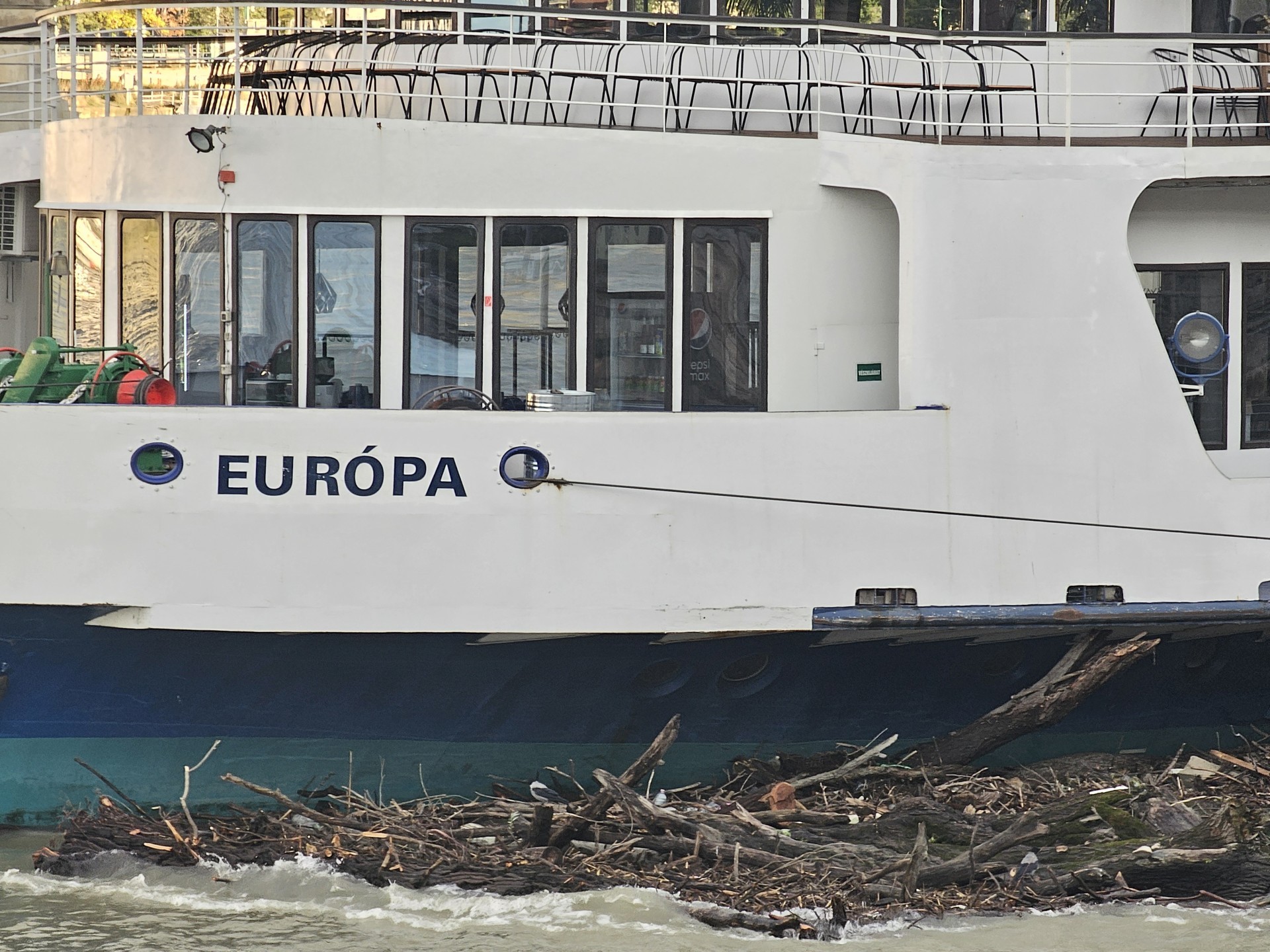 Hladina Dunaja je vysoká, ale všetko je očistené, iba jedna loď má nachytané drevo na rebríku. Vrátime sa kúsok na metro stanicu, zkade to ide metro popod Dunaj až ku nám (Maria Lujza).
