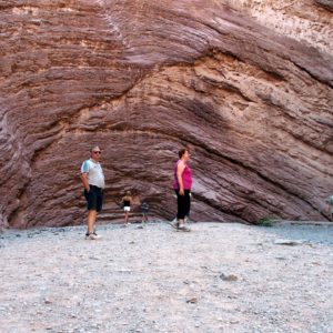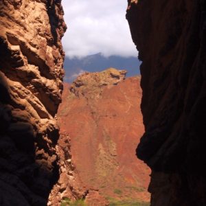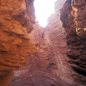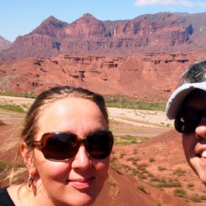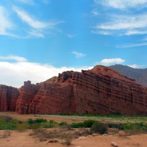 Zberáme ľudí a trochu sa nám zatočí pred očami, keď nastúpi partička Izrealcov. Berieme aj Paraguajcov zo včera a lokálnu štvorku na veľkej križovatke zo včera. Prvý úsek cesty driememe, potom už sa nevieme dočkať cikpauzy. Je aj čas raňajok, tak si dáme sušienky s maté. Na benzínke si kúpime jablkový džús bez prídavku cukru a konzervantov. Ani nechutí nejako moc divne, ale na môj šok je v tom aspartam. Tak to je už aký drsný ofajč. Po cikpauze začne sprievodkyňa výklad, a kozenky z Izraela za nami kecať. Vôbec nič nepočuť. Aj ich sprievodkyňa teatrálne upozorní, aj domáci zvrzajú, no kozy za nami stále kvákajú. A keď nekvákajú tak nedávajú pozor a potom sa pýtajú sprostosti. Nenecháme sa ale znechutiť a robíme všetko preto, aby sme si výlet užili. Ideme púštnatou krajinou a zastavujeme pri kadejakých útvaroch vymytých do pieskovcových skál. Je ešte príjemne teplo, ale slnko už cerí zúbky. Niektoré útvary obzeráme iba z busu. Vedúca nám dopredu vysvetlí kam sa máme kukať, šofér trochu pribrzdí a my len kukáme. Má to vážne dobre načasované, ale asi jej aj pomáha šofér. Na troch posledných zástavkách už chodíme ako ako šváby po tieňoch. Je už brutálny výpek. Na poslednej zástavke pred Cafayate si už kupujeme chlebík a suveníry. Mali sme pôvodne ísť najprv do mesta a potom do vinárne, ale ako prechádzame okolo vinárstva, asi máme dobrý čas a zapadneme tam. Všetci sa hrnú do wécka a potom chvíľu postávame v tieni a kade tade, kým sa zorganizuje prehliadka. Vinárstvo je oproti tomu v Maipu úplne krpaté. Majú tu len pár malých sudov a do zrecej miestnosti nás ani nepustia. Nasleduje koštovka. Kozy rohaté spoza nás si ešte na drzovku vypýtajú doliať červeného do nedopitého pohára, na čo rozlievačka neveriacko pozerá. Ženské si zobrali víno von a vychutnali si ho s cigaretkou. Kúpili sme si fľašku vychladeného suchšieho bieleho za 45ARS ku obedu. Problém tu je, že skoro všetko biele víno tu robia sladké ako šľak, a nedá sa to piť v týchto teplotách. To čo sme koštovali bolo super, ale ako dezertné, deci a menej na hlavu. Ešte nás vyložia na 15minút na trhu. Trh je turistická megapasca – supermarket so suvenírmi. Kúpime si tam ale pytlík semienok chia. Pestujú sa tu vraj neďaleko a majú výbornú cenu 25ARS za ¼ kilo. To je menej ako 7.20 EUR za kilo. Na námestí nám mladá ukáže odporúčanú reštiku a zmrzlináreň s vínovou zmrzkou a vystupujeme. Máme dve hodky rozchod. Zapadneme na trávnik na námestí, v tieni a papkáme náš proviant, ktorý bol pôvodne na včera. V tomto teple nám došla voda, tak vybehnem nejakú pozháňať. Chodím strašným teplom, nájdem podnik, kde majú menúčko za 30ARS, no pivo nikde. Kúpim aspoň vodu za10ARS, ktorá v tomto teple chutí lepšie ako pivo a pečivko za 50Centov – lebo som nemal 2Peso drobné. Lokálne pivo nakoniec nájdem v cukrárni. 660mL za 55ARS. To je dosť brut, lebo priemyselné stojí liter 30 ARS v lacnejších podnikoch, 17ARS v supermarkete. Ale zase je seriózne dobré, tak sa ukľudním. K ukľudneniu prispieva aj 8% voltov alkoholu. Zbehneme ešte do kostola a znova do zmrzlinárne, tentokrát na zmrzlinu a WC. Nevieme sa rozhodnúť akú kúpiť a 250g predávajú iba v troch chutiach. Máme ale možnosť okoštovať a nakoniec kúpim pol kila za 70ARS, štyri chute. Biele víno – torrontes, kaktusovú s orechami, kokovú a tiramisu. Pre porovnanie, v našom obľúbenom Grido je z 70ARS celé kilo zmrzky. Bolo to zaujímavé, ale nemôžem odporúčať. Keď chce človek dobrú smotanovú zmrzku, radšej to Grido. A nie len kvôli cene.