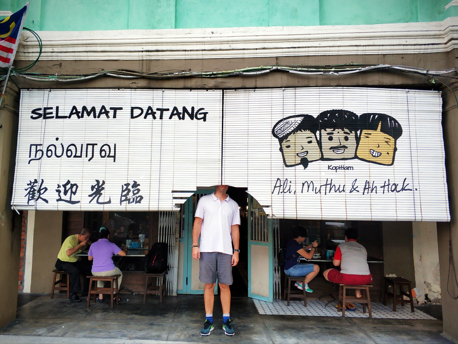 D033: 10.12. 2018 Kuala Lumpur → Langkawi Na posledné raňajky sa obaja zafliaskame od kari nudlovej polievky. Rezance sa nám šmýkajú z paličiek a fŕkajú zafarbenú tekutinu z…