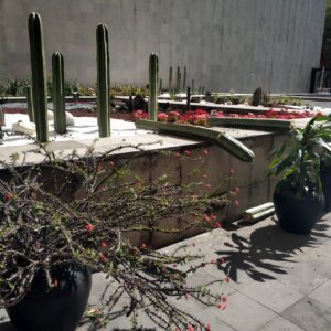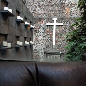 Tri krát sa zastavíme v bezplatnom múzeu banky, ktoré má na 3 poschodiach naištalované nádherné remeselné práce rôznych regiónov z celého Mexika. Novonájdený Starbucks s intímnou záhradkou pod múrmi chrámu využívame na regeneráciu z mestského chaosu.