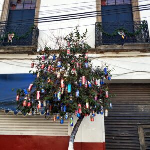 Vianoce sa tu slávia 25.12. a na naše prvé ráno je mesto úplne vymreté. Všade je pokoj a prázdnymi ulicami sme rýchlo v parku. Sviatočná omša znie zo všetkých otvorených kostolov. Na Zocale (Hlavnom námestí) frčí klzisko s najväčším umelým povrchom v Amerike. Výzdoba je zelená a rastlinná, podtrhujúca eco trend. Ulica s jedlom za Templo Mayor je úplne prázdna, ale podarí sa nám násť pár taco pointov (12 – 15MXN). Po obede sa staré mesto začína zapĺňať vyštafírovanými domácimi rodinkami. Štedrá večera nám napriek limitovaným možnostiam výjde kráľovsky ( v taquérii Camperón) a dostaneme sa aj k vysnívanému nopálu (kaktusu).