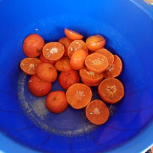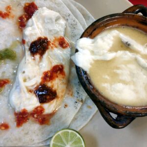 Nasledujúce rána si u nás na rohu kupujeme pollitrák čerstvého džúsu z mandariniek. Starčeka spred dvoch rokov nahradila mladá tehuľka. Tá ovocie poctivo omyje v lavóre, rozpolí a ručne v kovovom pákovom žmýkači vyžmýka. Džús cez riedke sitko naleje do pohára. Na pol litra potrebuje 20 ks mandariniek (20 MXN). Ponúka aj čerstvé sendviče, nenormálne dobrý je pierna espanola (údená šunka na majonézovom šaláte s jalapenos za 25 MXN).
