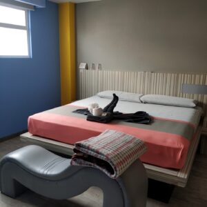Hotel Eco s dvoma hviezdičkami je v podstate Love hotel. Prvý krát sme tu cez booking.com skončili pred dvoma rokmi. Personál aj čistota je stále top a 10 minút do centra po začiatok parku Hidalgo je pre nás výborná pešia poloha. Na presklenej recepcii s nekonečným výberom (od A ako Alkohol cez P ako Prezervatív sa dá vybrať až po V ako Viagra) je možné platiť len v hotovosti a to maximálne na jednu a to aktuálnu noc. Lokálne páriky si diskrétne vyberajú od 3 po 12 hodín, potom je už účtovaná plná nočná cena (240 MXN versus 260 online). Zamilované mladé páriky prichádzajú vchodom z ulice, tie postaršie inkognito vchodom z hotelového parkoviska.