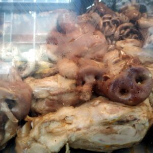 V BestBuy v blízkej Plaza Forum (brutálne veľký šoping) kupujeme praktickú jednolitrovú rýchlovarnú konvicu za (689MXN, čo je o 90 viac ako vo Walmarte, ale tá mala až 1,7l). Postupne sa zásobíme čajmi, ktoré si vytrvalo varíme. Sklamaním je misia China Town a čaj, zoženieme len jeden sypaný, zelený-jazmínový. Nabudúce tam ale treba kupovať ekonomickú konvicu. Štvrť je plná milých kaviarničiek rušných rozhovormi domácich. Obľúbime si jednu v pasáži (ako na Obchodnej alebo niekde v Prahe) spojenú s pražiarňou. Okrem dobrej kávy a suchého pečiva majú aj slušnú matchu. Kaviarnička je vždy plná domácich, sem tam sa zastaví pouličný muzikant, ktorý využije akustiku pasáže. Susediaci obchod La Europea má nekonečný výber luxusných potravín (šunky, syry, oliváč) a alkoholu sveta (víno ale aj lokálna tequila a mezcal). Predávajú aj smradľavú nasolenú rybu bacalao navideňo (treska), ktorá je v tomto sviatočnom období trendová. Na druhej strane je obchod s nekonečnými domácimi potrebami v La Aurora.