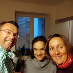 Som čerstvo chorý, tak v Brne nejdeme smažiť do mesta, ale Denisa nás nakladá s thajskou polievčičkou a sushi do auta a kvasíme u nej doma. Belinka nám chýba a decká sú radostné, keď prídu zo školy domov a my sme „TO Prekvapenie“. Vesna skúša inlajny (korčule), tak jej popri práci na Denisinom novom 27“ moňáku upratujem dráhu (dosť nebezpečne sa tvári vysoký rebrík na jednom rohu) a stopujem koliečka.