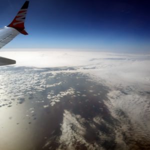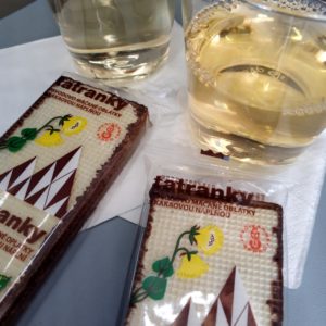 Nakúpime péčko, buchtu a jogurty v Bille a po raňajkách ideme cez security. Stále nie je jasné z akej brány ideme a dozvieme sa to až 30 min pred boardingom. Príde mi to celkom fail, lebo to spôsobí celkom chaos. Smart Wings je ináč celkom deluxe, majú víno od Znovínu. Veltlín zelený sa celkom dá do striku. Jedlo je nie úplne najhoršie. Dostaneme aj Tatranky ako olovrant. Môj spolusediaci je buď masový vrah alebo kriminalista, lebo si celý čas číta len rubriky o vraždách a znásilneniach a to dokonca v časopise na to špecializovanom (v češtine).