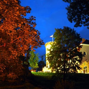 Večeriami v hipsterskom podniku a al Brooklyn. Pekný dekór a super dizajn jedla trochu pokulháva čo sa chuti týka. Ale fľaša bieleho francúzskeho nesklame a zaujme aj otvorená kuchyňa, kde vidíme celý proces prípravy jedál. Otvorená kuchyňa je zase na druhej strane dvojsečná zbraň, a niektoré veci človek nechce vidieť naživo, hlavne keď tuší, že to bude to jeho jedlo. Pozerať sa 20 minút na kuchtíka, ako sa trápi s prípravou neslaných cestovín je aj nie je zážitok. Inak sme spokojní a po slávnostnej večeri si vychutnávame krásy nočného hradu a priľahlého parku.