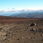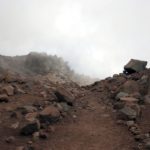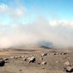 Ideme sa trochu poprechádzať smerom kade sa stúpa hore na horu, sadneme si na kamene a pozeráme autá, v ktorom by mohol byť náš vodca – Eloi. Keď sa tu objaví pánko čo má učiť vodcov angličtinu odtiahne nás až pod strmý chodník hore. Tam sa oddelíme, lebo však nemáme nič ťažké dnes robiť a vraciame sa do chaty s mladým Ukrajincom. Ten včera kempoval s Bielorusom a Ruskou hore vo vetre. V noci vyrazili už len chalani, Ruske bolo zle z výšky. Hore to dal len Ukrajinec. Ten bol ale taký rýchly, že vyšiel na prvý vrchol ešte za tmy (4.30) a vodca odmietol pokračovať na hlavný vrchol, lebo nevedel kde sú praskliny. Doteraz naháňali stan, ktorý im odfúklo, keď balili kemp. Chaloš robí v San Francisku pre Amazon. Zobral som mu aspoň ten stan, i keď nevyzeral taký zničený ako Rakúšan.