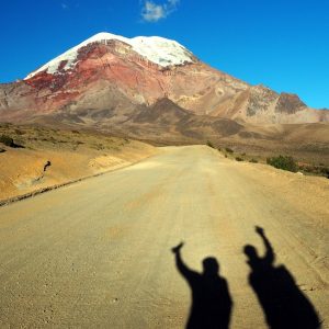 Dole zbehneme za 1:15 a kúsok za bránou na nás trúbi pickup, tak mu zamávame, dobehneme ho a berie nás na korbu. Chimborazo sa odoblakuváva, no nás na korbe ofukuje až sa musíme držať. Podľa vecí na korbe a mŕtveho pstruha usudzujeme, že rodinka v aute sa bola niekde kúpať. My sa len tešíme, ako si s radosťou zaplatíme ten dolár za kuchyňu a uvaríme si čajík a budeme ho popíjať až kým nebudeme vládať chodiť na WC.