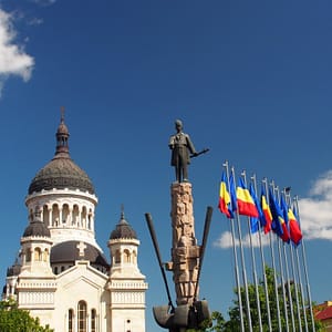 Na Lukoil benzínke dolejem vodu do ostrekovačov, lebo zimná zmes už došla a chceme si dať kávu na zahriatie. Espresso stroj ale nemajú a automat je pokazený. No pekne, aspoň že záchody idú. Po 50km sme v Cluj Napoca a kupujeme v trafike rovno celodenné parkovanie za 9.50Lei. Motkáme sa centrom, pozeráme monument a kostoly až zapadneme do cukrárne na kávu a net. Prebieha prvé písanie denníka. Obsluha nám pochválila polepený notebook a odporučila Constantu ako najkrajšie mesto v Rumunsku. Je to zatiaľ na pláne, tak uvidíme. Porota sa vozí v červenom Sharane. Mesto sa nám páči, na jednom konci veliké námesti so súsoším Mateja Korvína a jeho kapitánov s velikým parádnym kostolom archanjela Michaela a na druhom konci promenády pekná pravoslávna bazilika. Je tu veľa univerzít, tak ulice a námestia pulzujú množstvom študákov.