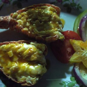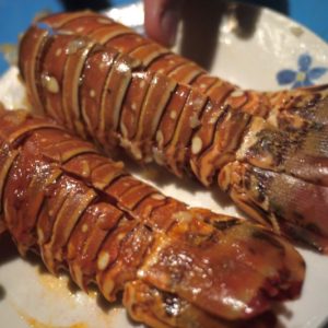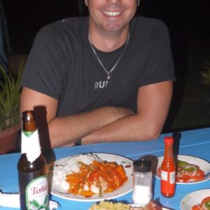Nakoniec sme to ale prežili, vylodili sa a nasledovali Fluvia do hotela, ktorý už mal vyzistený. Zle sme odbočili, resp. sme neodbočili, kde sme mali, tak sme došli až na letisko. Tam sme sa otočili a po ďalších 10 minútach šlapania sme šli okolo roztomilej pláži s hotelom za $10 na noc. Ja som ešte stále cítil rozhrkaný žalúdok a aj som mal dosť teperenie sa s vakom, tak som sa tam rovno zložil. Pláž bola úplne super, hneď cez nedláždenú cestičku, cena bola fajn, tak reku, že nech si idú ďalej to pozreť, ja ich počkám. A aj sa Katka s Fluviom vrátili, cena už bola medzičasom 15 dolárov, tak sme zostali na mojom mieste. Po kúpaní a sprche sme sa s Fluviom dohodli, že pôjdeme na lobstera. On mal info, že kde ho majú najlacnejšieho za 150 cordobas. V jedinej reštike, ktorú sme čekli ho mali za 330, tak sme zobrali taxíkza 15C každý a poď ho na cestu okolo ostrova. Taxikár nas vyložili pred podnikom a zdrhol skôr ako sme zistili, že kuchár je na dovolenke a celý týždeň sa nevarí. Pekne. Tak sme šlapali chvíľu, až sme na autobusovej zastávke narazili na taxikára, ktorý nás zobral do ním odporučeného podniku. Tam mali lobstera za 250, čo bolo o 50 viac, ako písali ešte v decembri na tripadvisore, ale bol fakt super. Ja som ho mal s kokosovou omáčkou a bol božský. Katke chutil jej cesnakový viac, mne zase môj. Babka sa s nami aj povyprávala, že ako kedysi robila na Kaymanských ostrovoch a ako je ťažké sa tam dostať. Do tretice nás zobral taxík domov, po ceste sme sa ešte zastavili v nejakom bare a menili šóféra pred jeho domom, a keď sme už boli takí pozastavovaní, poprosili sme šoféra, nech zastane pred supermarketom na vodu. Odviezol nás potom inou cestou pred náš hotel, takže sme dokončili výletný okruh. Po tme sme si na našej vlastnej plážičke odpálili cigaru a s Fluviom zaspievali Boba Marleyho. Bol to nádherný večer s nohami namočenými vo vode.