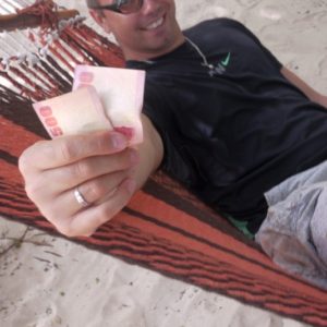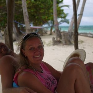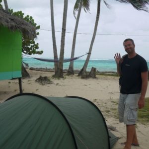 Keďže pláže na našej strane neexistujú a my sme okrem jednej jazdy taxíkom z ostrova nič nevideli, vyberieme sa na najkrajšiu pláž ostrova aby sme nejako vyplnili čas do skorej večere o 16:00. Po asi 20 minútach prechádzkou cez primárne domorodcami obývané vnútrozemie končíme na vážne peknej širokej a udržiavanej pláži. Mohli by sme sa zložiť hocikde, ale kôli tieňu a nejakému tomu kúpajúcemu sa vo vode, ideme k prvej reštaurácii, chladiac si morskou vodou bosé nohy v horúcom dni. Z reštaurácie sa vykľul skôr hotel a tak ideme ďalej. Zapadneme v ďalšiom a poslednom podniku na velikánskej pláži. Pivko a káva sú konzumované v primeranom množstve. Trochu sa kúpeme, počasie sa začne rapídne zhoršovať až začne pršať. Pivko je ešte stále konzumované v primeranom množstve a preberáme možnosť odvozu taxíkom. Tie totiž jazdia opodiaľ hotela priamo po pláži. Sú dve pred hotelom, ale berú veľkú párty a nechcú nás zobrať ani keď sa párty motká. Nakoniec ale prestane pršať – ako taxík na letisko odišiel, takže sme v pohodke a cez supermarket, kde som nič nekúpil a obchodík o suchým kokosovým chlebom sa vrátime a ideme dobaliť plavky. Podarí sa mi ešte zdriemnúť. Medzitým príde Michael, rozhodol sa ďaľšiu búrku stráviť radšej na Big Corne. Všetci spolu ideme na rundown. Ten je celkom fpohode, strašne veliký, takže to ani nedojeme. Je tam menší lobster, ryba a nejaké mušle, platany a asi aj banány a nejaké manioky. Ledva dojem všetko mäso, ani polku uhľohydrátov a ešte dám trochu Katkinej ryby. Som brutálne nafutrovaný. A teraz ma čaká 12 hodín na mori po búrke. Pekne naplánované. Úplne fpohode by som bol prejedený po jednej porcii rozdelenej medzi mňa a Katku. Prepchatý si zapínam vak pod pás, aby mi netlačil na bruchu a fučím do prístavu, lebo nás v ňom varovali, že si máme švihnúť. Českí bratia nepoužívajú hodinky, takže ešte ležia na posteli, keď ja zapínam vak. Zmiešaný pár nás predbieha, ale zastavujú sa v obchode a dostávame sa do čela. Fluvio zostal zaháknutý. Prví beloši na lodi nevieme čo máme robiť, tak zložím Katku na lodi a idem kúpiť nejakú kolu, že na pretrávenie, lebo pivo ani fernet nikde nemajú. Tí, čo majú hamak (húpaciu sieť) si ho vešajú. Jeden nemčúr si dokonca kúpil jeden v prístave, z vrecovinovo vyzerajúceho materiálu. Fluvio zo svojho magicky malého vaku vytiahne parádny turistický hamak a v panickom vešaní (jeden z námorníkov vešia 2 hamaky pre turistiky a neskôr aj dva pre nás, ktoré sú v cene) sa vešia na posledné miesto – nad vaky. Naše sú dokonca v smere jazdy. Vyrazíme o hodinu neskôr a zažijeme popri čakání aj nejaký ten dáždik. S rastúcou vzdialenosťou od brehu rastú aj vlny a celkom to hegá naše hamaky. Je to nákládná loď, na bezpečnosť sa tu moc nemyslí. Sem tam hamak vylieta akoby nad vlny, dúfam, že nevypadnem. Občas sa s K aj zrazíme. Nie je to úplne ideálne, musíme sa umiestniť tak, aby sme sa čo najmej búchali. Trochu aj prší a v jednom momente nám vojak na palube previaže hamaky ďalej a fixne, takže zrážky sú minimalizované. Mne ho dal aj vyššie, takže sa aj menej hegám. Nie je mi zle, ale cítim rundown a vlny v akcii. Problémom je ale dážď, premokájú mi rebrá a ruka, takže velíme ústup. Nechávame vaky na pospas osudu, veď sú na nich ochranné protidažďové obaly (čo sa neskôr ukázala byť chyba) a zdrháme do kuchyne, kde to najprv skúšam za stolom na stoličke, ale keď vidím tie brutálne vlny za oknom a rundown v žalúdku začne dávať svoju nespokojnosť s vlnami na známosť, sadám radšej na zem kuchyne, chrbtom o kabínu aby som nezavadzal v chodbičke. Oproti mne je umývadlo a pod ním vedrá označené výstražnými piktogrammi. Niečo jedovaté alebo žieravé. Na zemi je to lepšie, ale hegá to aj tak. Pri jednej extra silnej vlne sa vedro s nebezpečne značenou tekutinou rozbehne šuchom priamo mne do výstrihu. Keďže nechcem dostať vedierkom po guľkách zachytávam vedierko pravým kolenom (ktorému sa to vôbec nepáči a celkom bolí) a čas sa zrazu spomalí a veko vedra sa pomaličky otvorí a obsah vedra, tekutina bez chuti a zápachu sa na mňa celého vylieva. Od úst cez celé brucho stehná a nohy, všetko je kvalitne zmočené. Neveriacko sa snažím zistiť, čo vo vedro bolo, tvrdia, že voda, druhé vedierko odpratávajú, sušia podlahu a ponúkajú homelesácky kartón na sedenie na tom istom mieste. Katka zase schytala vedro so špinavým riadom, a z panvice sa na ňu odlepili nejaké prihorené fazule. Ja sa preberám zo šoku, prezliekam do Katkinej bundy, keďže všetko ostatné oblečenie mokne vonku na daždi (kiež by nás napadlo to ísť skontrolovať) a zostávam v mokrých kapsáčoch. Keď na Katku vybehne kuchynské vedierko po tretie, upevnia ho špagátom pod dres. Uľahám na Katku a homlesácky kartón a skúšam spať. Zakaždým, keď sa vykloníme na stranu, kedy idú veci z kuchyne na nás – premkne ma strach a som na postrehu. Zvyšoko noci ale preležím na kartóne aj keď Katka si ide neskôr pohľadať miesto von na palubu, keď už prestalo pršať a ona nevládze sedieť. Keď ale ráno otvorí vaky, že sa prezlečieme do suchého, prichádzame na to, že je všetko mokré. Zázračne jedny moje nohavice sú suché, tak sa prezliekam.