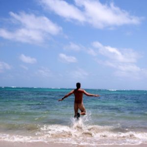 Kým sa ráno vymotkáme, Českí bratia sú už naspäť s raňajkami a informáciou o lodi o 6tej večer. Je to celkom praktické (získame deň a ušetríme ubytko za noc), ale pri predstave čo všetko treba spraviť a čo sme na dnes plánovali sa mi do toho moc nechce. Katka teda balí a ja sa idem posledný krát okúpať na našu pláž, dnes s rozbúrenými vlnami a štyrmi lokálnymi deckami. Kým som v sprche objaví sa aj Fluvio so zázvorovými koláčikmi a pristupuje na nový plán. Mojou úlohou, ako čerstvo osprchovaný je zabehnúť do centra a preobjednať večeru na 4. Jasné, že kým tam dôjdem už som opak čerstvo osprchovaného a tak sa po splnení misie aspoň odmením pomarančom. Ošúpané pomaranče aké mávali už od Kuby no nikdy sme ich neskúsili nie sú úplne ošúpané k jedeniu, odstráni sa vždy len tá oranžová vrstva, pomaranč je biely, rozreže sa na poly, drží sa v holej ruke za bielu šupu a vyjedá sa dužina. Bol to asi najlepší pomík aký som kedy jedol. Sladučký a náhodný ako čerstvo vymačkaná šťava. Zobral som aj mandarínky a hustý kompót na raňajky do vločiek.