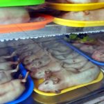 Ideme na tržnicu, že si kúpime koku. V budove si dáme riadne kyslý džús z pomarančov a marakuje. Potom beháme hore dole no koku nikde nemajú. Tak si aspoň kúpime čoklo za 2Soly, čo je skoro biela kukurica s mega veľkými zrnami. Jedno je asi také veľké ako 4 žlté kukuričné u nás. Z tržnice nás pošlú von, kde v uličke obzeráme vykuchané morské prasiatka. Je to dosť drsné a bez chlpov riadne malé. Neviem, či za to dám 55Solov. Však to je ledva pre jedného. Z dverí obchodíku oproti zase trčia nohy kureniec. Ideme hlbšie do uličiek a brutálne to tam smrdí kadejakými zvieracími zvyškami. Zeleninové trhy sú predsa len menej smradľavé. Nakoniec nájdeme dve predavačky koky na začiatku paralelnej uličky. Sadneme si na obrubník a dávame granadillu a kukuricu. Založíme to lístkami. Tieto sú ok, bez pachuti, no trochu také akoby presušené. Sú mäkké, no necítiť z nich tak tie alkaloidy. K tvrdí, že tŕpnu.