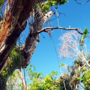 Cesta je so západom magická a pohurikánová spúšť všade naokolo je viditeľná. Cestu lemujú kopy trosiek – dreva, kríkov, stromov, plechov a piesku.
