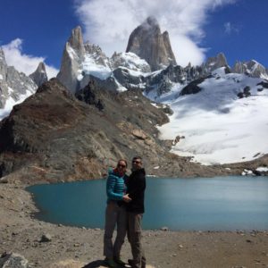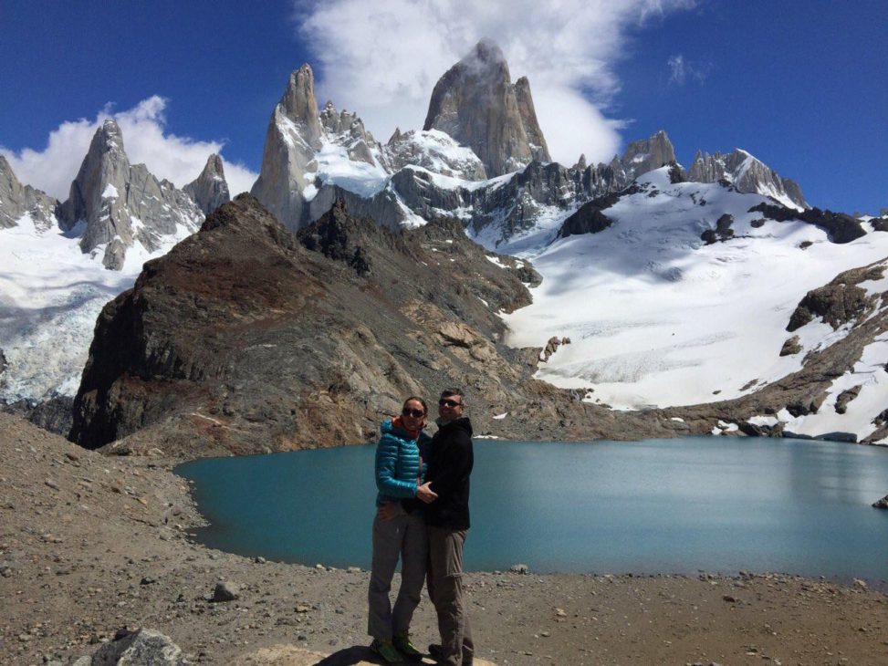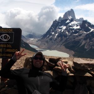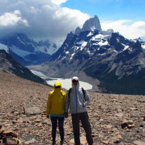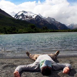 Po raňajkách oddychujeme, píšeme, nabíjame zariadenia. Letenky sú drahé, tak možno pôjdeme hore busom. Ten podľa Simona ide ale až 10teho-v sobou. No pekne. Asi tu zostaneme zaháknutí. Ale však nevadí. Kuchyňa je fajn, ľudia príjemní a okolie parádne. Zase zbehnem do obchodu, a keďže je už dosť neskoro a veľmi pekne rozhodneme sa vybehnúť niekde do kopcov, že si spravíme piknik. Berieme aj horúcu vodu na maté. Dotiahneme to ale len na lavičku oproti recepcii cez parkovisko. Je z tade parádny výhľad na Fitz Roy. Tak si tam rozbalíme šunku syr a bagety, otvoríme červené vínko a hodujeme.