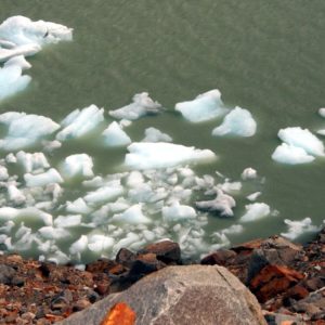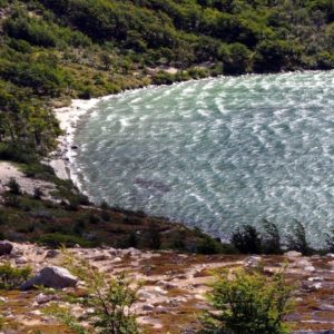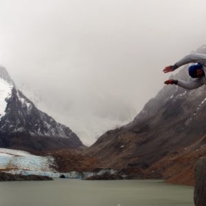 Naše ranné ambície sa rozplývajú v hmle. Namiesto skorého štartu na vyhliadku dospávame. Je hmla, na končiaroch je čerstvo nasnežené, dnes toho moc neuvidíme. Po raňajkách sa vybehnem pozrieť aspoň na pleso vzdialené 5 minút. Je hneď za priehradou, ktorú si tam posledne nahrnul ľadovec. Ten je teraz zcvrknutý na opačnom konci plesa. Na mojom konci je mnoho kusov ľadu. Vyzerá to celkom pekne. Začína snežiť, tak zbehnem späť a babami. Varíme si obed, dole píšu dve hodiny, nikam sa neponáhľame. Stále dúfame, že sa dnes hádam počasie umúdri. Adéla sa nudí, tak pred dovarením obeda vybehne sama na pleso. Po jedle tam zase ideme my dvaja s K. Je tam už kopa turistov z dediny. Chorváti, čo majú vedľa nás stan vyslali pánka s pupíkom do plesa. Ten si len v slípoch pobehuje po kolená v ľadovej vode a hrá sa s kusmi ľadu, ako keby bol niekde v Dubrovníku. Spôsobuje celkom rozruch, ale nikto nemá odvahu skúsiť to tiež. Z brehu vybehneme na násyp a ideme proti smeru hodinových ručičiek, že aby sme mali lepší výhľad na ľadovec. Je to super, ale hlavný kopec – Cerro Torre nevidno vôbec. Vyzerá to tak, že ten je väčšinu času v oblakoch.