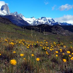 Registrujeme sa na rendžerskej stanici. Teta si nás premeriava, lebo registrovať sa treba iba na 7 hodinový trek – jedným smerom a my sa tvárime, že to ideme dať na otočku o 11:00. Keď neskôr nad mapou pochopíme, že to asi nebol Simonov trek tak sa nad tým iba rehoceme. Tipujeme, že Simonov trek je 4hodinová cesta na vyhliadku a frčíme. Je fajn, moc nefučí, pečie slniečko. Ideme miernym kopcom cez pekné pasienky, kravky Milky v lesíku aj s hordou doterných ovädov. Pri prvej vode sme už hladní, tak si dáme kúsok bagety. Po hodinke lesom sa dostávame na holý svah, kde už začína pofukovať, tak prikladáme vrstvy. Na skalách rastú krásne dvojfarebné papučky. Na vyhliadke na Cerro Torre, ktoré, zase raz nevidno fučí tak, že sa musíme schovať za skalnú stienku aby sme sa najedli. Tri empanady sú poriadne napráškované, z cibuľovej sa mi ešte tri hodiny grgá a cestou dole cítim aj fajne chemicky koleno.