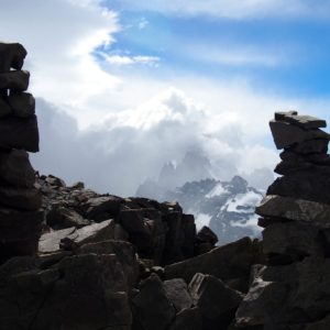 Cesta na vyhliadku nám trvala tri hodky, miesto Simonových dvoch, ale aj tak mám nutkanie vybehnúť na kopec. Ešte sme tu nič nesumitovali. Hodím si preto peniaz, oddelím sa od K a idem hore. Je to dlhšie ako som si myslel, a brutálne fučí. Výhľad ale stojí a to. Schovávam sa pred vetrom pár minút, že sa Fit Roy vystrčí z oblakov, ale nechcem moc dlho nechávať K čakať. Samozrejme, že sa vystrčí až keď zostupujem a mám skoro polku záberu svah na ktorom som.