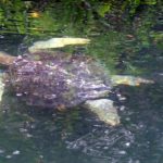 Potom máme konečne decentné šnorchlovanie. K si ale zobrala tmavé plavecké okuliare, tak až tak moc toho nevidí. Asistuje ale chuderke Helen (Angličanke žijúcej v Austrálii), ktorá sa v záchrannej veste vznáša na vlnách ako balíček narkotík. My ale trikrát vidíme žraloka bielohrotého. Postupne objavujeme aj nejaké korytnačky. Davida učím ako vyfukovať vzduch zo šnorchľa. Nemeckému páriku to vôbec nejde. Objavím zátočku, kde oddychujú tri korytnačky. Keď tam privediem Davida a vraciam sa tam s Austrálčanmi, žiadna korka tam už nie je. David všetky odplašil. Idem ďalej a hrám sa s húfom menších rybičiek. Väčšinou, keď zbadám korytnačku o chvíľu za ňou nasleduje nejaký šnorchľovač z našej partie. Miestami to vyzerá tak, že každý si naháňa vlastnú korytnačku. Mám z radosti šnorchľovačov pomaly väčší zážitok ako zo samotnej zveriny. Nemci zase hviezdia. Stále je v niečom problém. To že Marta nevie plávať zjavne nehrá žiadnu úlohu. Hlavne, že majú papuče na chodenie po pláži.
