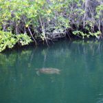 Podvečer si robíme výlet loďkou na skalu, kde obdivujeme suly modronohé (blue-footed boobies), pelikány a tučniaky. Potom sa plavíme mangrove porastmi s uškatcami a hordami korytnačiek.