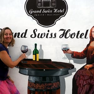 Premávka je taká súvislá, že často nevieme prejsť cez cestu. Pešie chodníky takmer neexistujú a keď sú, bežne sú blokované stánkami alebo motorkami. Obedík si nakoniec zadelíme na nábreží s výhľadom na krásne more a mrakodrapy – ako v Paname. Dáme fajnú veľkú praženú ryžu so zeleninou za 5 Ringit, kocháme sa výhľadom a chladíme vetríkom. V prístave konečne pochopíme, prečo je tu toľko postarších bielych párov. Sú to pasažieri velikej výletnej lode, čo už včera svietila v prístave.