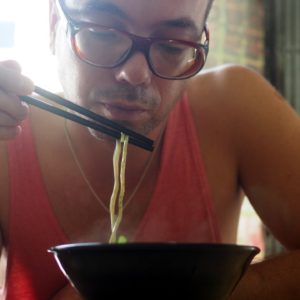 V tmavej klimatizovanej miestnosti sa vyspíme dosýta. Až tak, že je zrazu 10 hodín. Raňajky preto dávame urýchlene v domácom nudlovníctvo cez cestu. Všetko je podávané s domácimi rezancami. Začíname zľahka vegetariánskou polievčičkou(6,5) a drinkom(3), čo chutí ako sušené hrušky. Kým to pripravujú obzeráme sa okolo. Všetky rezance robia v asi 7mich príchutiach, okrem čistých majú aj zelené –špenátové, červené-čili alebo čierne s popolom. To potom kombinujú s rôznymi mäsami – nasucho, alebo zaliate vývarom ako polievka.