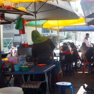 Ja som už dosť hladný, tak si v 7-Eleven kupujem detské kexíky za jeden Ringit a kúsok po ulici zapadneme na raňajkové nudličky v čínskej kaviarničke . Dáme si ich trocha štipľavé, ale viac by už nebolo treba. Ľadový čaj i káva sú super a ani nie moc sladké.