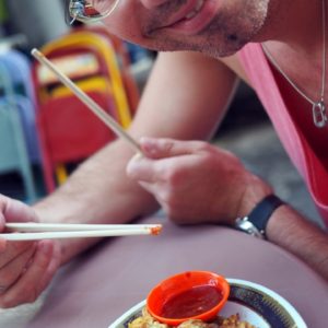 Z ulici si dávame neskorú večeru – super rezance s krevetami a ryžu so štipľavými slanečkami a vajcom v banánovom liste a tešíme sa na zajtra. Do Georgetownu sa chodí hlavne výborne sa najesť.