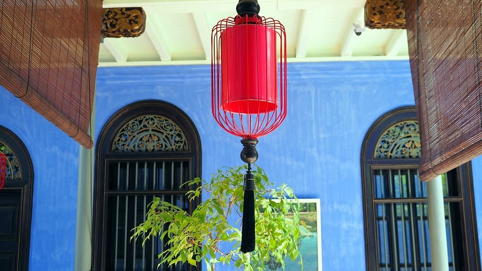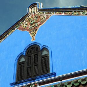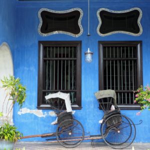 Modrý dom dal postaviť bohatý čínsky obchodník Cheong Fatt Tze pre 9 generácií. Má cez 30 izieb a je harmonizovaný podľa FengShui. Bývali v ňom dve generácie a keď najmladší syn zomrel, dom odpredali v dezolátnom stave s 34rodinami v podnájme. Polku majetku stratili v Číne znárodnením, na zvyšok prišla zlá doba a dediči po siedmych manželkách.